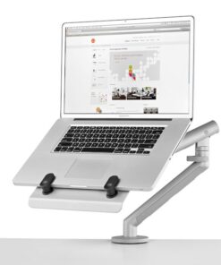 - The Flo monitor arm holds one monitor or laptop (with laptop mount)